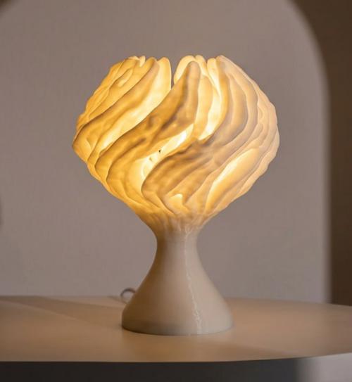 Each lamp is born from algorithms inspired by organic growth patterns — coral formations, wind-sculpted dunes, flowing water. Layer by layer, warm PLA transforms into sculptural light objects that cast a soft, bone-white glow, turning any room into a sanctuary of calm.